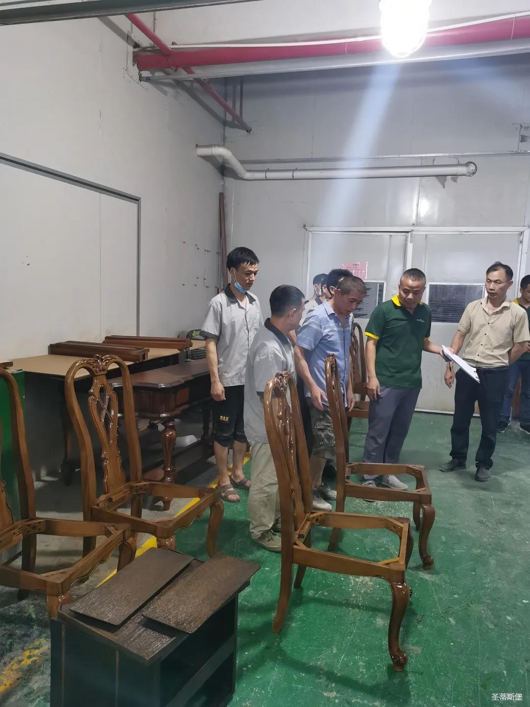 本届技能竞赛设置为工业组和商业组,共设竞赛项目8项,其中,工业组竞赛包含了打滚边、打铜钉、自身产品组装、成品组装、柜体喷底色、修色、板材开料等七大细项。商业组以组装办公台、床头柜为主。